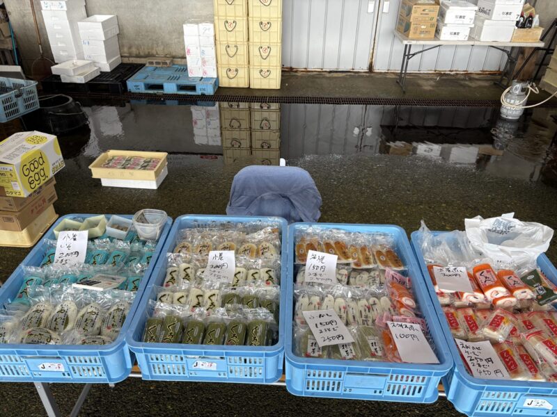 生地蒲鉾も以前からのお付き合いがあるということでお声がけをいただき、市場内でかまぼこの特価販売を行いました。