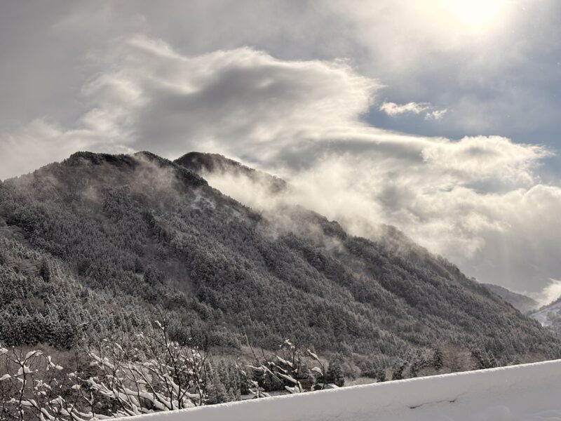 晴れていると荘厳な景色だと思いますが、この数分前まで前も見ずらいくらいの雪が降っていました。