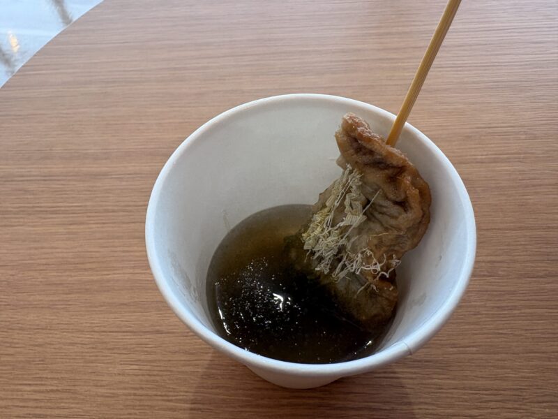 出汁にふわ天をつけて、耐熱カップに入れてとろろ昆布をまぶして提供するスタイルで家で食べてもらうというより、小腹がすいた際にその場で体を温めながら食べていただくことをコンセプトとして販売しました。