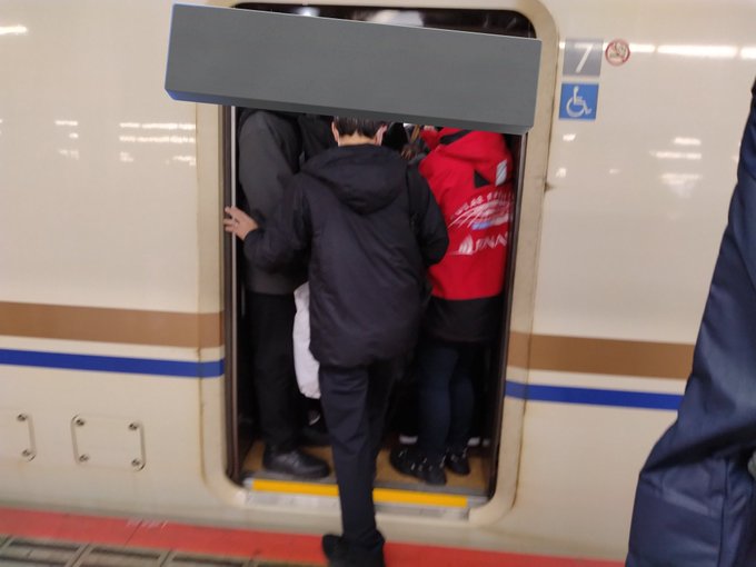 ようやく乗り込んで何とか席を確保してくつろごうとしていても途中の駅からどんどん人が乗り込んできて通路までいっぱいになっていました。